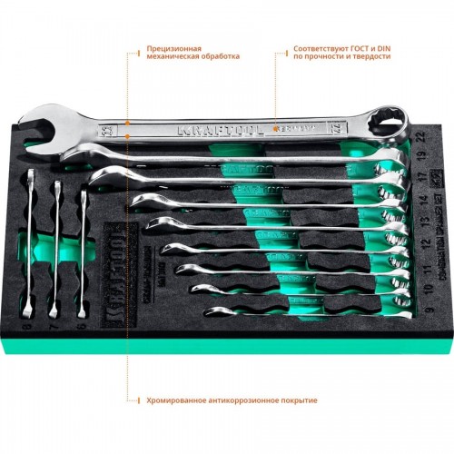 Набор комбинированных гаечных ключей KRAFTOOL 27079-H12E, используется для работы с шестигранным крепежом. Ключи изготовлены по современной технологии методом холодной штамповки. Многоступенчатая закалка для твердости и прочности. Хромованадиевая сталь. 12-гранный кольцевой зев для удобства захвата и сохранности граней крепежа. Открытый зев повернут на 15 градусов относительно оси инструмента. Ключи выдерживают высокие нагрузки и стойки к истиранию рабочих граней. Рабочие характеристики соответствуют ГОСТ 2838 и DIN 3113.