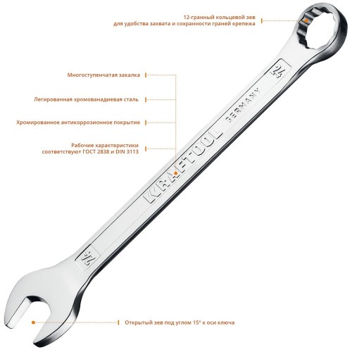 Набор комбинированных гаечных ключей KRAFTOOL 27079-H12C_z01, используется для работы с шестигранным крепежом. Ключи изготовлены по современной технологии методом холодной штамповки. Многоступенчатая закалка для твердости и прочности. Хромованадиевая сталь. 12-гранный кольцевой зев для удобства захвата и сохранности граней крепежа. Открытый зев повернут на 15 градусов относительно оси инструмента. Ключи выдерживают высокие нагрузки и стойки к истиранию рабочих граней. Рабочие характеристики соответствуют ГОСТ 2838 и DIN 3113.