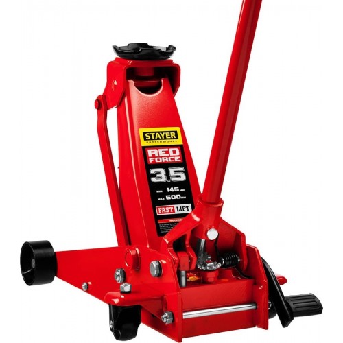 STAYER 3,5т, 145-500 мм, домкрат гидравлический подкатной с педалью RED FORCE 43155-3.5
