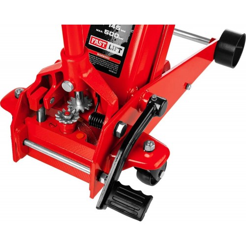 Профессиональный подкатной домкрат для СТО с педалью для быстрого подъема груза обеспечивает надежность и высокую скорость работ.