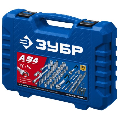 ЗУБР А-94, 94 предм., (1/2" + 1/4"), универсальный набор инструмента, Профессионал (27635-H94_z01)
