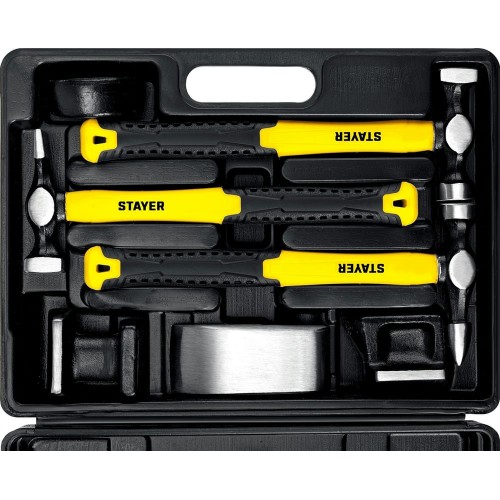 Набор молотки рихтовочные с правками STAYER 20322-H7, предназначен для правки изделий из листового металла, геометрия которых была нарушена в результате механического воздействия. Широкий выбор молотков и правок позволяет придать любую форму изделию, включая сложные поверхности с различными радиусами скругления. Используется для правки изделий из листового металла.