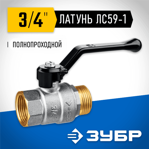 ЗУБР d=3/4" кран шаровой полнопроходной, ручка, "мама-папа" 51324-3/4
