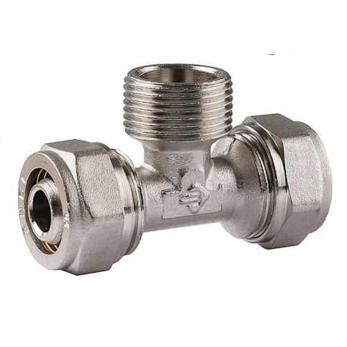 Тройник с наружной резьбой ЗУБР 51404-20-3/4, предназначен для присоединения металлической трубы с внутренней резьбой под углом 90 ° к участку трубопровода из металлопластиковых труб одного диаметра. Применяется для герметичного соединения частей трубопровода. Тройники из никелированной латуни с низким содержанием свинца, возможно использование в системах питьевого водоснабжения.