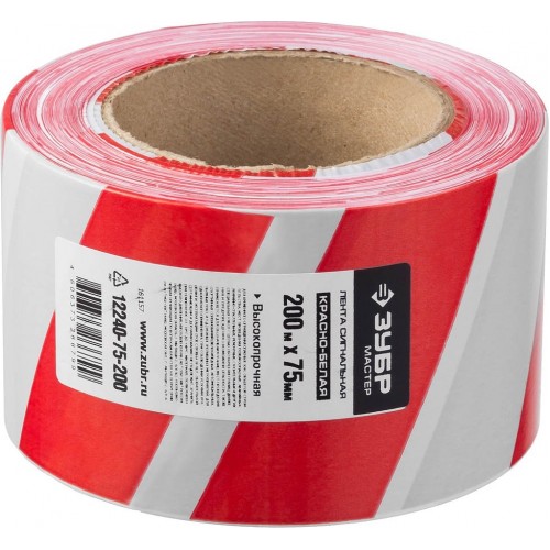 Лента сигнальная ЗУБР 12240-75-200, предназначена для временного ограждения опасных зон, объектов строительства, мест проведения пожароопасных, аварийных, аварийно-спасательных, ремонтных, строительных и других специальных работ с целью обозначения границ движения и предупреждения о возможной опасности. Также применяется для обозначения границ мест проведения спортивных соревнований (велосипедных, автомобильных, лыжных трасс и т.д.) и иных зрелищных мероприятий. Сигнальная лента изготовлена из полиэтилена высокого давления с нанесенным цветографичеким изображением. Обладает стойкостью к воздействию воды, высокой прочностью на растяжение и на разрыв.