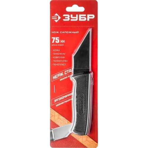 Нож сапожный ЗУБР 0954_z02, применяется для реза листовых материалов: кожа, резина, линолеум и т.д. Изготовлен из высококачественной стали, что обеспечивает высокий ресурс и надежность в повседневных хозяйственных работах. Эргономичная обрезиненная рукоятка обеспечивает комфорт в применении. Надежная фиксация лезвия в рукоятке обеспечивает максимальную прочность и долговечность ножа. Прецизионная заточка обеспечивает чистоту и точность реза.