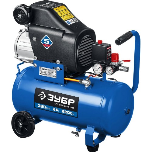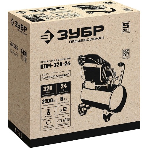 ЗУБР 2200 Вт, 320 л/мин, 24 л, поршневой, масляный, компрессор воздушный КПМ-320-24 Профессионал
