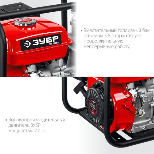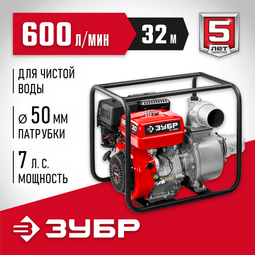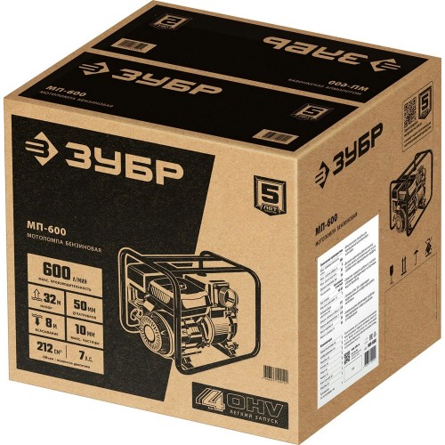 ЗУБР 600 л/мин, мотопомпа бензиновая МП-600