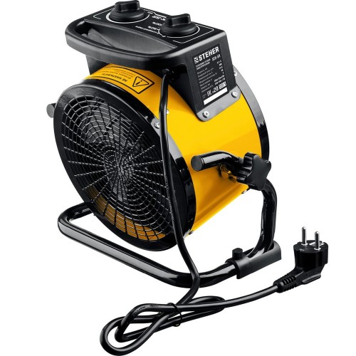 Тепловая пушка электрическая STEHER SEK-5R предназначена для обогрева небольших помещений. Благодаря малым размерам тепловую пушку легко переносить и хранить. Оснащена долговечным металлокерамическим нагревательным элементом, обеспечивающим быстрый и равномерный нагрев, экономное потребление электроэнеергии и при этом не сушит воздух. Механический терморегулятор поддерживает нужную температуру нагрева. Термопредохранитель предотвращает повреждение изделия и окружающих предметов при нештатной работе. Мощный двигатель вентилятора способствует увеличению теплоотдачи изделия за счет большого объема прокачиваемого воздуха. Степень защиты IP 20.