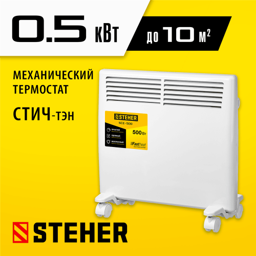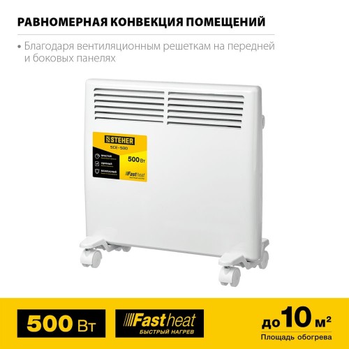 Электрический конвектор STEHER мощностью 500 Вт - подойдет для обогрева любых домашних и офисных помещений площадью до 10 м2.
