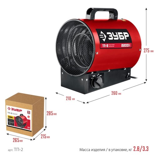 ЗУБР 2.2 кВт, электрическая тепловая пушка ТП-2 Мастер