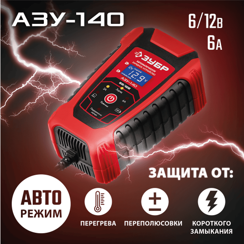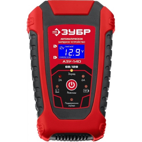 Автоматическое зарядное устройство предназначено для зарядки аккумуляторных батарей легковых автомобилей и мотоциклов, снегоходов, катеров (лодок), газонокосилок, тракторов, гидроциклов и т.д. Зарядные устройства ЗУБР управляются с помощью микропроцессора. Данные устройства обладают высокой эффективностью и имеют защиту от ошибок, которые может допустить пользователь. Микропроцессор зарядного устройства оценивает состояние батареи и соответствующим образом устанавливает силу зарядного тока и напряжение (в зависимости от типа АКБ и её состояния). Это позволяет наиболее эффективно зарядить аккумулятор и продлить срок его службы.