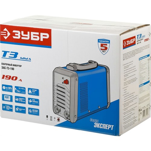 ЗУБР 10-190 А, ММА, IGBT, инвертор сварочный ЗАС-Т3-190 Профессионал