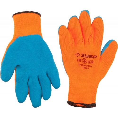 Перчатки утепленные ЗУБР 11465-S, предназначены для защиты рук от общих производственных загрязнений и скольжения. Высокопрочный материал и надежное покрытие обеспечивают превосходную защиту. Яркий сигнальный цвет перчаток обеспечивает дополнительную безопасность при работе в условиях плохой видимости. Рельефная структура покрытия позволяет комфортно работать с мокрыми и скользкими предметами. Выполнены из акриловой пряжи, которая отличается высокой объемностью, за счет чего теплозащитные свойства перчаток намного выше, чем у аналогов из натуральной шерсти. Махровая внутренняя поверхность перчатки обеспечивает дополнительную термозащиту рук при работе на холоде.