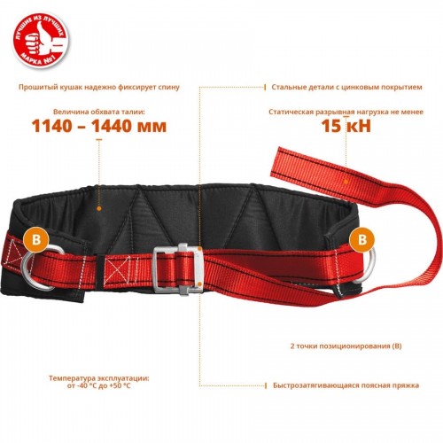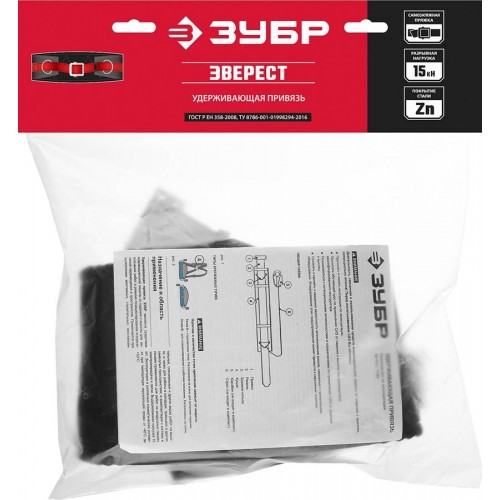 Удерживающая привязь ЗУБР 11582, применяется как средство защиты от падения с высоты. Размер кушака: 730 (L) мм. Обхват ремня: 1140-1440 мм. Соответствует: ГОСТ Р ЕН 358-2008, ТР ТС 019/2011. Имеются 2 точки крепления и быстрозатягивающаяся пряжка на поясе.