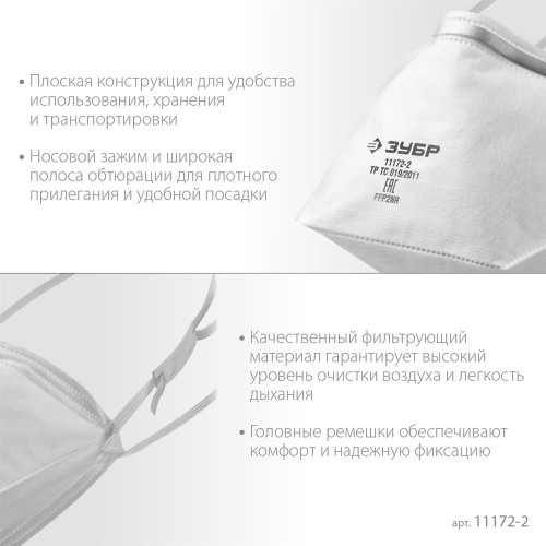 ЗУБР П-95, плоская, класс защиты FFP2, фильтрующая полумаска (11172-2)