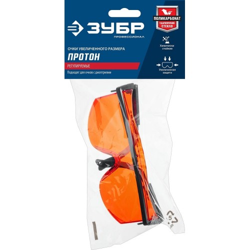 Защитные очки ЗУБР ПРОТОН 110483, предназначены для защиты органов зрения от твердых летящих частиц.