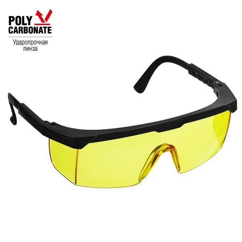 Желтая линза обеспечивает хорошую видимость при слабом освещении и в пасмурную погоду. Дополнительная защита от летящих сбоку частиц. Оптический класс – 1. Возможность подгонки длины дужки по размеру лица.