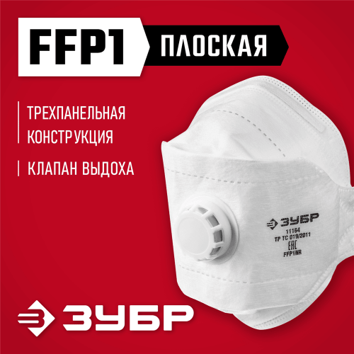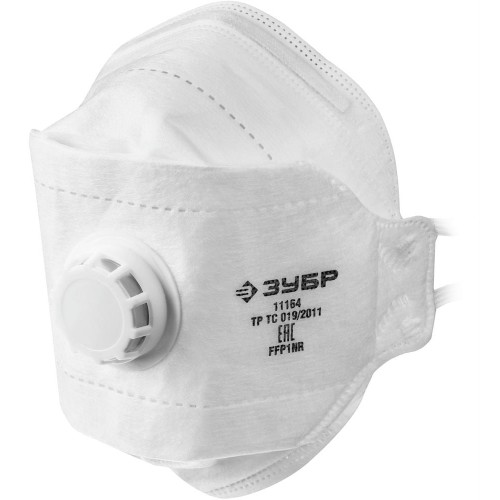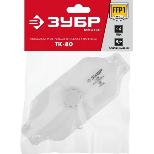 ЗУБР ТК-80 класс защиты FFP1, с клапаном выдоха, плоская 3-х панельная, фильтрующая полумаска (11164_z02)