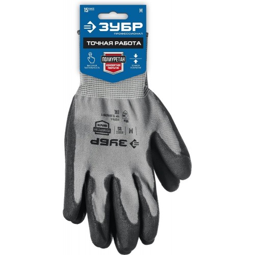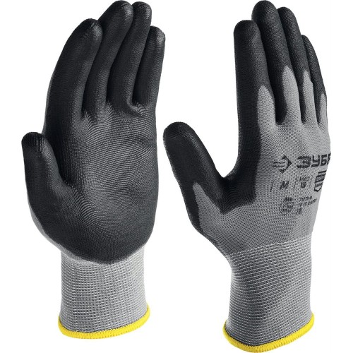 Перчатки рабочие ЗУБР 11275-M_z01, предназначены для выполнения точных работ (сборочные и упаковочные), где важна защита рук и сохранение чувствительности пальцев. Перчатки незаменимы при строительстве, сельскохозяйственных работах, на химических производствах. Они защищают руки от механических, химических и термических повреждений, грязи и брызг металла. Полиуретановое покрытие обеспечивает хороший захват и не оставляет следов на глянцевых и стеклянных поверхностях. За счет своей эластичности, хорошо облегают кисти рук, что обеспечивает гибкость и чувствительность пальцев при выполнении точных работ. Выполнены с применением технологии бесшовной вязки, что создает повышенный комфорт при работе. Дышащий материал перчатки позволяет работать в них, не снимая длительное время. Размер - М.