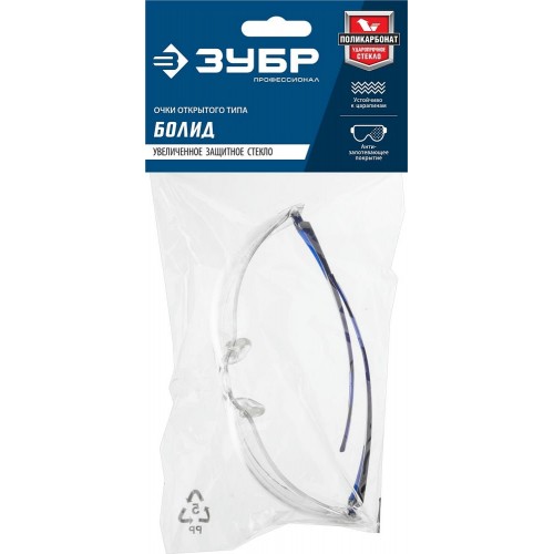 Защитные очки ЗУБР БОЛИД 110485, предназначены для защиты органов зрения от твердых летящих частиц.