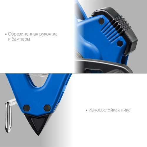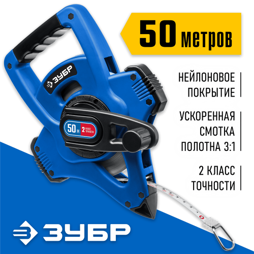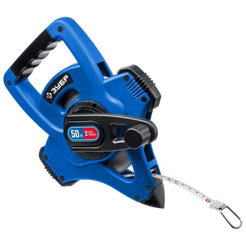 Мерная геодезическая лента ЗУБР 34170-50_z01, предназначена для проведения измерительных и разметочных работ. Ударопрочный открытый корпус с удобной складывающейся рукояткой. Утолщенное стальное полотно с защитным нейлоновым покрытием. Ускоренная смотка 3:1. Крюк-петля для фиксации полотна.