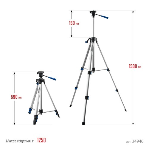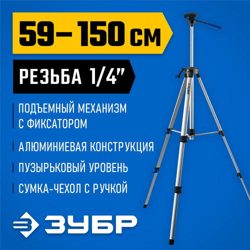 Штатив геодезический ЗУБР 34946, предназначен для работы с лазерным, оптическим и фотоинструментом. Прибор можно точно установить на нужной высоте при помощи выдвижной колонки. Выполнен из алюминиевого сплава.