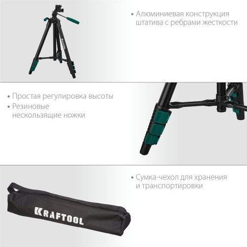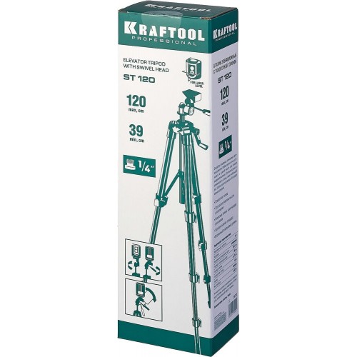 Штатив элевационный KRAFTOOL 34712, предназначен для работы с лазерным, оптическим и фотоинструментом. Прибор можно точно установить на нужной высоте при помощи выдвижной колонки. Выполнен из алюминиевого сплава, благодаря чему имеет небольшой вес. А за счет малого размера штатив легко носить и легко с ним работать.