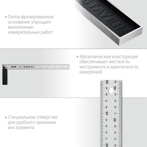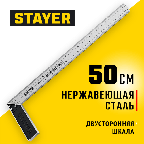 STAYER 500 мм, столярный угольник с нержавеющим полотном STABIL 3431-50