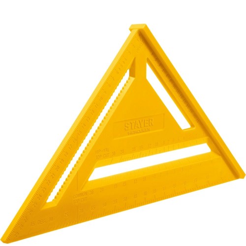 Угольник кровельный STAYER 5-в-1 34522-30 предназначен для разметочных работ при установки кровли, а так же контроля перпендикулярности конструкций, как торцовочный угольник, транспортир, рейсмус, направляющая для пилы. Прочный пластиковый корпус толщиной 8 мм для максимальной точности. Длина шкалы 305х305 мм.