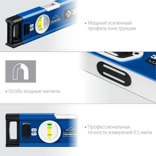 Магнитный строительный уровень ЗУБР 34572-060, предназначен для контроля горизонтальности и вертикальности поверхностей. Точность измерений 0.5 мм/м. Особомощные редкоземельные магниты. 3 ударопрочные колбы с гарантией 50 лет. Зеркальная колба упрощает измерения вертикальных поверхностей. Фрезерованная базовая поверхность.