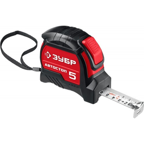 ЗУБР 5 м х 25 мм, автостоп, ударостойкий, обрезиненный корпус, рулетка Автостоп 34052-05-25_z01
