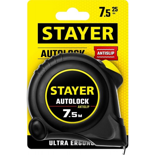 Рулетка измерительная STAYER 2-34126-07-25_z02, предназначена для проведения линейных замеров. Рулетка измерительная с автоматической фиксацией полотна для повышения удобства измерений.