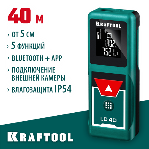 Профессиональный лазерный дальномер Kraftool - высокоточный прибор для быстрого и простого измерения линейных расстояний, площадей и объёмов. Позволяет проводить весь цикл измерений одному человеку, значительно ускоряя выполнение разметочных работ и повышая точность полученных данных. Позволяет создавать дизайнерские проекты напрямую в вашем смартфоне.