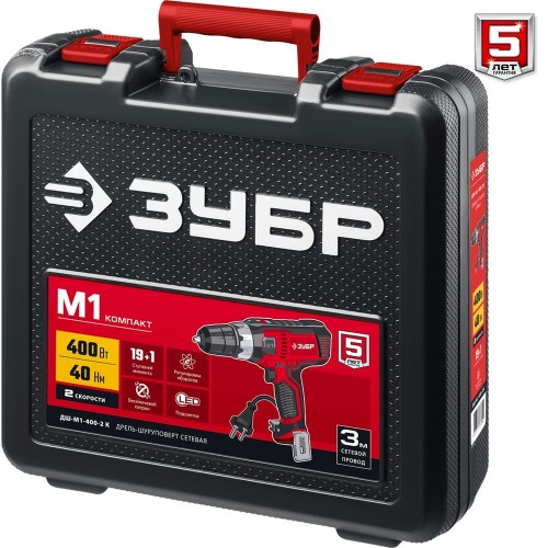 Дрель шуруповерт ЗУБР ДШ-М1-400-2 К, предназначена для вкручивания/выкручивания шурупов, саморезов и винтов (при установке соответствующих бит), а также для сверления при работе от сети. Надежность и долговечность из-за отсутствия аккумуляторной батареи (по сравнению с аккумуляторными шуруповертами). Регулировка частоты вращения для работы с различным крепежом и материалами. Ограничительная муфта крутящего момента предотвращает развальцовывание шлицов и порчу материала. Широкий диапазон регулировки крутящего момента с равномерным нарастанием момента во всем диапазоне и большим, чем у конкурентов, значением на предпоследней позиции. Быстрозажимной патрон для максимальной простоты и скорости замены расходного инструмента. Реверс позволяет изменять направление вращения для вкручивания/выкручивания крепежа. Эргономичная рукоятка с противоскользящей накладкой. Подсветка рабочего места способствует дополнительному удобству при работе в условиях недостаточного освещения.