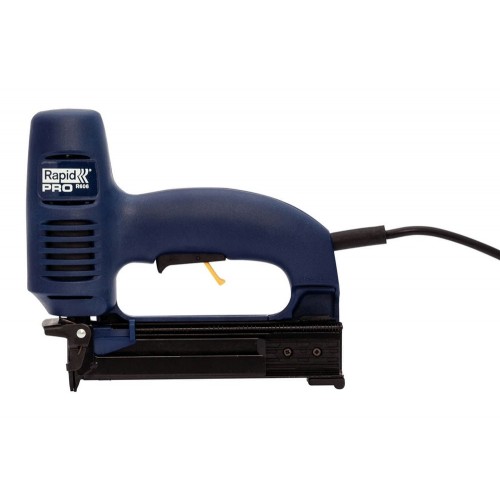 Электрический степлер RAPID 10643001, предназначен для трудных работ как с твердой, так и с мягкой древесиной. Он также идеально подходит для небольших деревянных конструкций, таких как рамы для картин, ящики и для фиксации панелей. Имеет качественную конструкцию и собран из прочных деталей. Он оснащен съемной передней панелью, которая позволяет быстро устранять застревания, и шнур длиной 3,5 метра, который повышает мобильность и эффективность инструмента. Для скоб № 606, 12-25 мм и штифтов № 8, 15-25 мм. Регулируемая настройка удара с помощью Focused Power - более высокая мощность для более сложного сшивания. Съемная передняя панель для легкого удаления застрявших скоб. Кондуктор для более легкой установки панелей в комплекте. Отдача отсутствует. Безопасный спуск. Двойной магазин для скоб с узкой спинкой и штифтов.