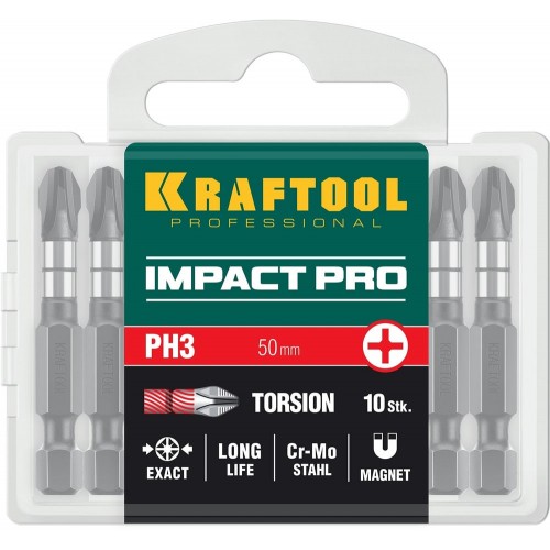KRAFTOOL Impact Pro PH 3, 50 мм, 10 шт, Ударные биты (26191-3-50-S10)