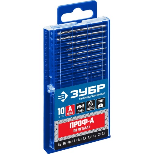 ЗУБР ПРОФ-А 10шт(0.5-2.2мм), Набор сверл по металлу, для печатных плат, сталь Р6М5, класс А (29625-H10-P)