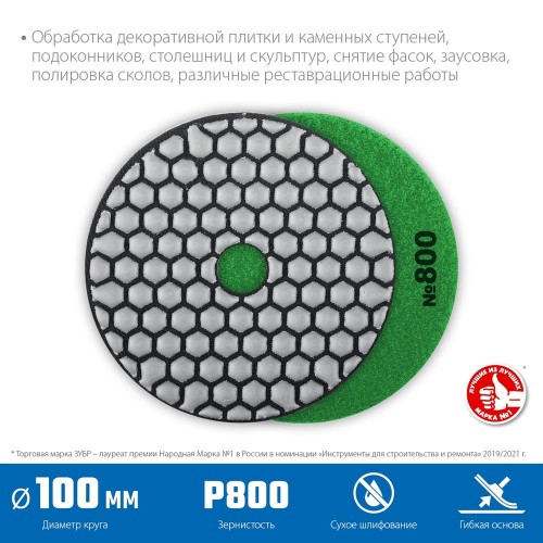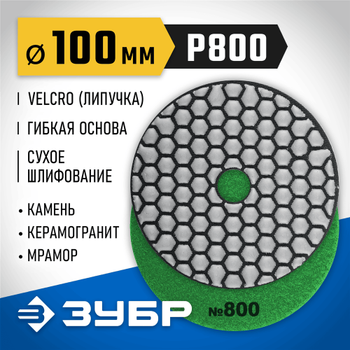 ЗУБР 100 мм, №800, алмазный гибкий шлифовальный круг (Черепашка) для сухого шлифования 29868-800