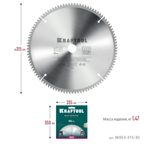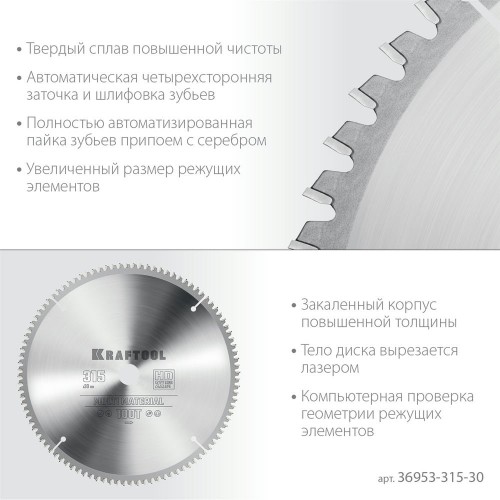 KRAFTOOL Multi Material 315х30мм 100Т, диск пильный по алюминию (36953-315-30)