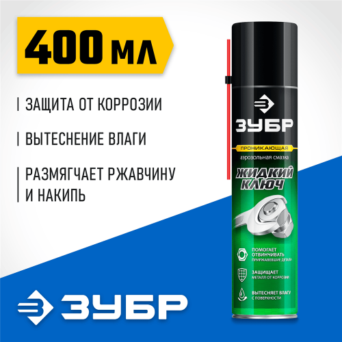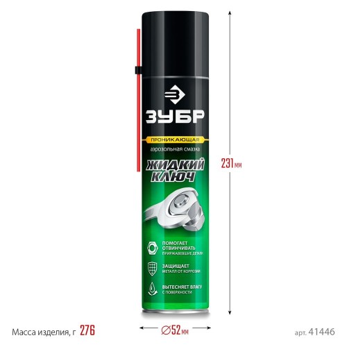 Проникающая смазка ЗУБР 41446, предназначена для упрощения отвинчивания заржавевших резьбовых соединений, смазывания трущихся поверхностей, удаления скрипов и заедания деталей.