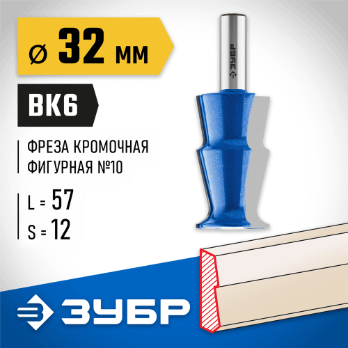 Фреза кромочная фигурная №10 ЗУБР 28721-32, предназначена для изготовления фигурных кромок и торцев деталей при обработке различных видов древесины. Высококачественный твердый сплав для повышенного ресурса и чистоты обработки. Заточка производится только на самых современных станках с ЧПУ.
