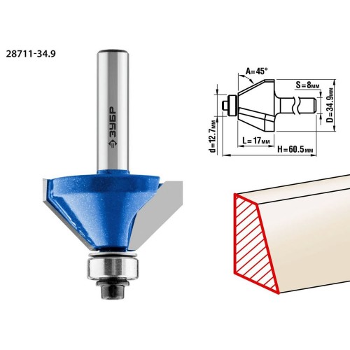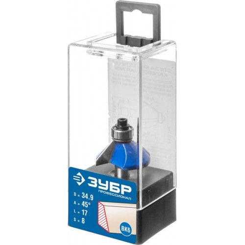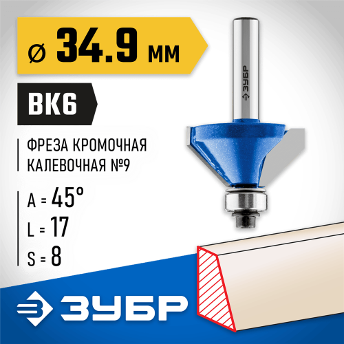 Фреза кромочная калевочная(фасочная) №9 ЗУБР 28711-34.9, предназначена для скругления кромок при обработке столешниц, полок, шкафов и прочих работ с разнообразными видами древесины. Высококачественный твердый сплав для повышенного ресурса и чистоты обработки. Заточка производится только на самых современных станках с ЧПУ. Упорный подшипник позволяет обрабатывать криволинейные кромки без дополнительных приспособлений.