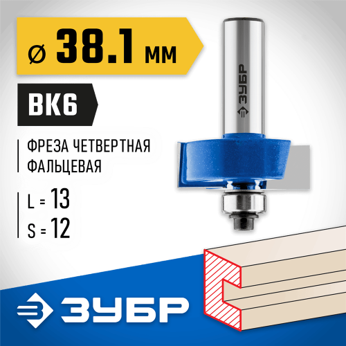 Фреза фальцевая ЗУБР 28758-38.1-12, предназначена для выборки пазов четвертей на кромках и торцах деталей при работе с различными видами древесины. Высококачественный твердый сплав для повышенного ресурса и чистоты обработки. Заточка производится только на самых современных станках с ЧПУ. Упорный подшипник позволяет обрабатывать криволинейные кромки без дополнительных приспособлений.