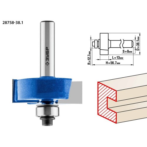 ЗУБР 38.1 x 13 мм, хвостовик 8 мм, фреза фальцевая 28758-38.1 Профессионал