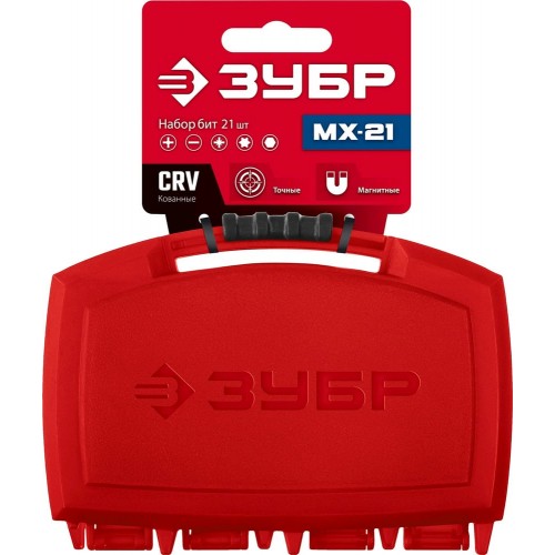 Набор бит МХ-21 ЗУБР 26600-H21, предназначен для монтажа и демонтажа резьбовых соединений. Магнитный адаптер для бит. Удобный кейс для хранения. Биты подходят для ручного и механизированного инструмента, изготовлены из высококачественной стали и имеют точную геометрию шлицов, что обеспечивает длительный срок службы.