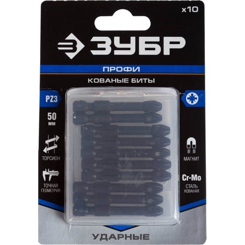 ЗУБР PZ3, 50 мм, 10 шт., кованые биты Pozidrive 26023-3-50-S10