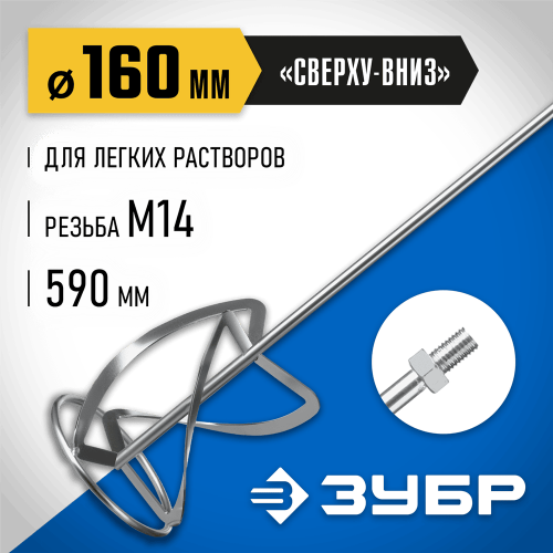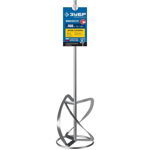 Насадка-миксер с лопастями ЗУБР МНЛ-П160 Профессионал, для перемешивания легких растворов (краска, грунтовка, штукатурка, наливной пол, затирка). Используется совместно с ручными миксерами ЗУБР ЗМР-1200Э-1, МР-1050-1, МР-1100, МР-1400-2 и МР-1600-2. Не поддается коррозии и не деформируется даже при эксплуатации в тяжелых условиях.