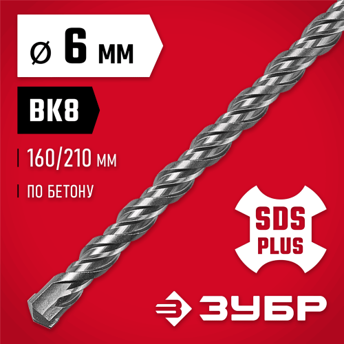 ЗУБР 6 x 210 мм, SDS-Plus, бур по бетону 29315-210-06