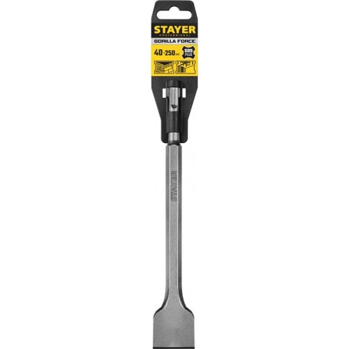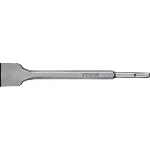 Зубило плоское 40 х 250 мм, SDS-Plus, STAYER29353-40-250_z02, для удаления штукатурки, выступов на бетонной обшивке, реконструкции стальных конструкций. Используется с перфораторами SDS-plus. Особенности изделия: индукционная трехступенчатая закалка, высокопрочная легированная сталь. Обладает высокой стойкостью к ударам и динамическим нагрузкам.